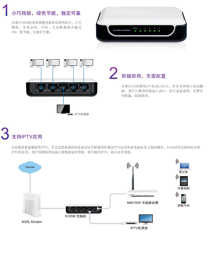 Compatible IEEE802.3 10Base-T and IEEE802.3u 100Base-TX network standards