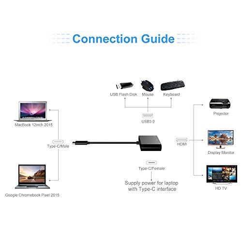 3-In-1. The USB 3.1 Type-C to HDMI+USB3.0+Type-C/F Charging Adapter helps you connect computer with type C port to a display monitor/projector/HDTV with HDMI port and other devices(mouse, USB flash disk,keyboard, etc) with USB3.0 port.