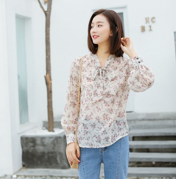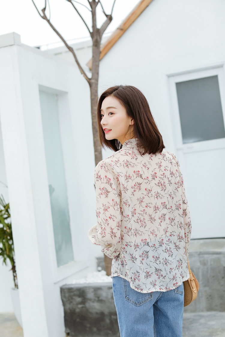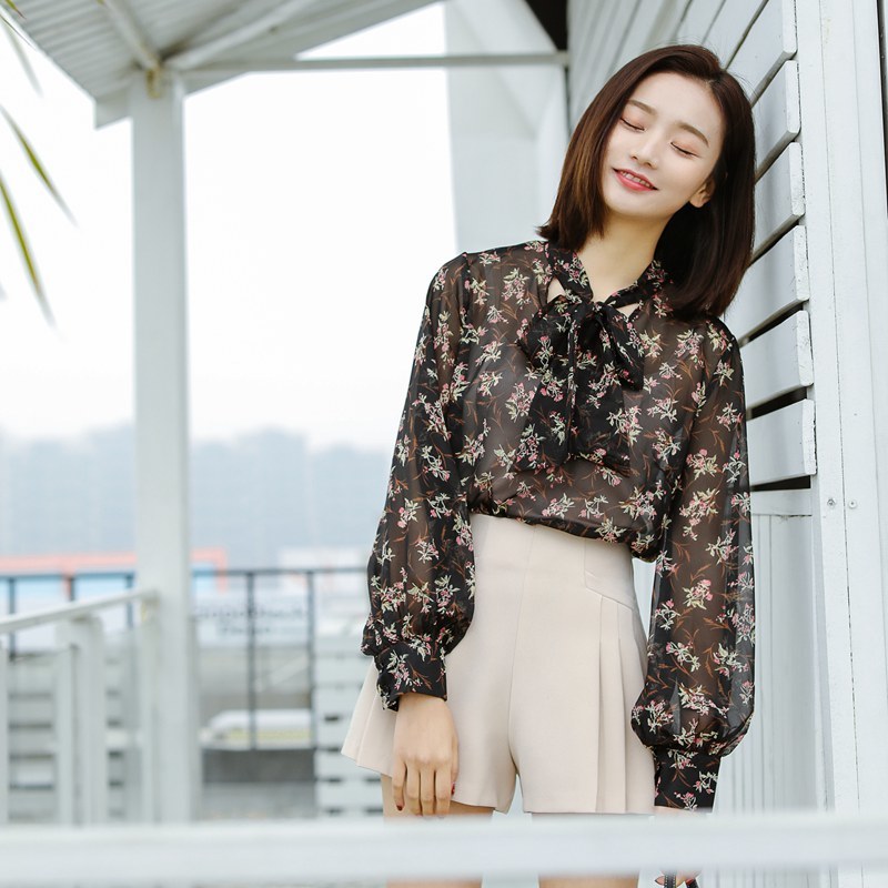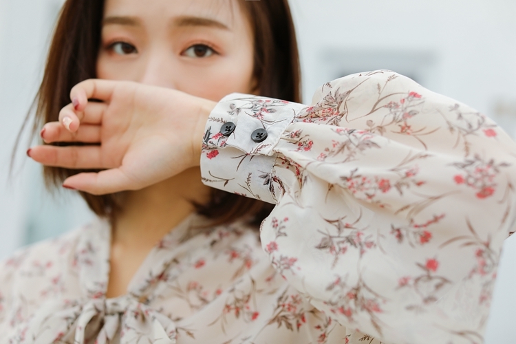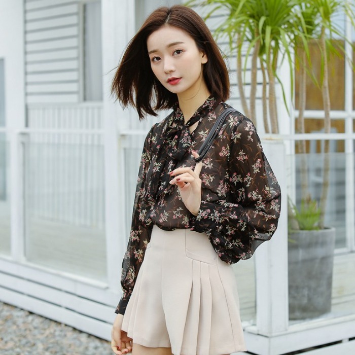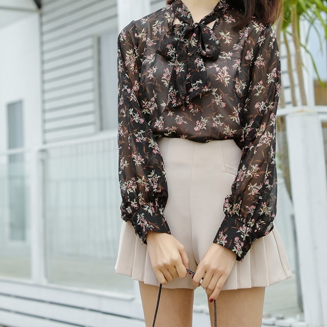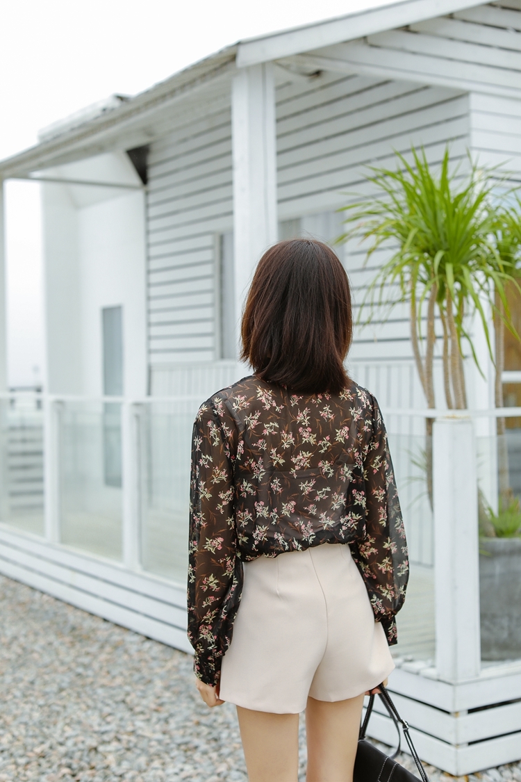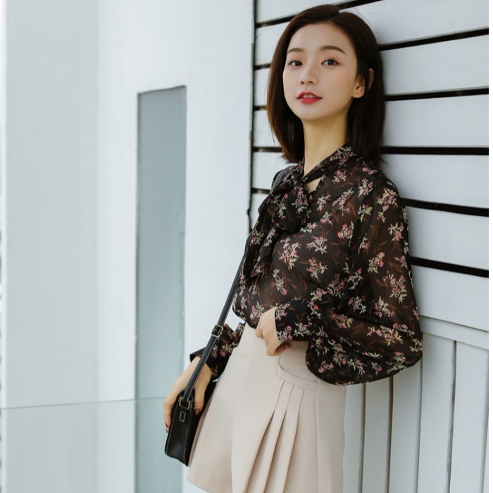 大人の女性らしい、落ち着いた花柄を全面にあしらったシフォンブラウスです☆