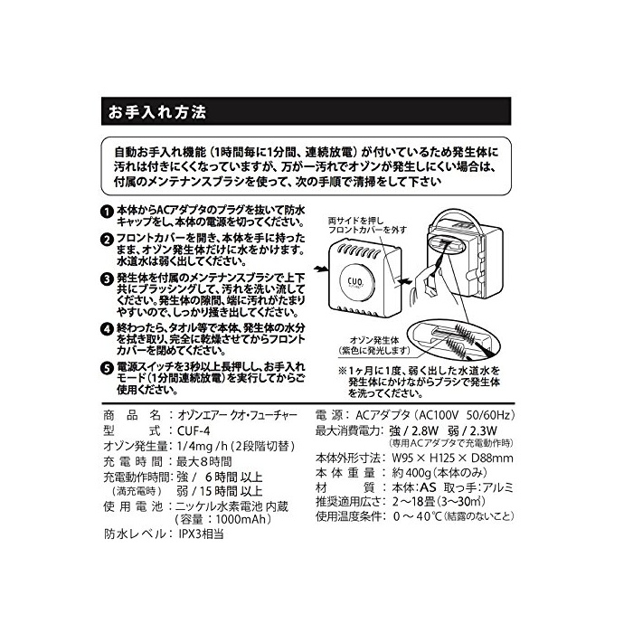 CUO FUTURE 오존 발생기 최대30다다미 공기 청정기 CUOFUTURE 쿠오 퓨처 일본제 오존 발생기 공기 청정기 탈취기