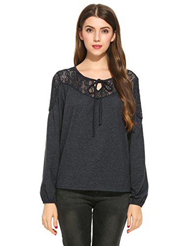 -. Title : ACEVOG レディース カットソー 長袖Tシャツ シンプル 無地 花柄レース トップス ストレンチ ふんわり 柔らかい 綿 ブラウス 春 夏 カジュアル 大きいサイズ