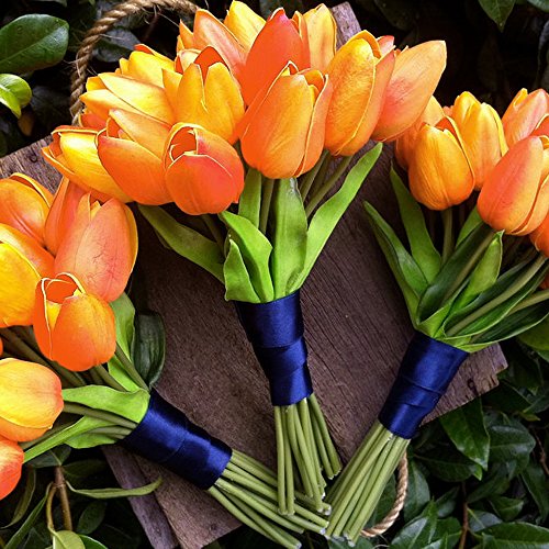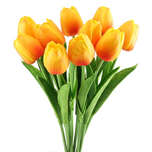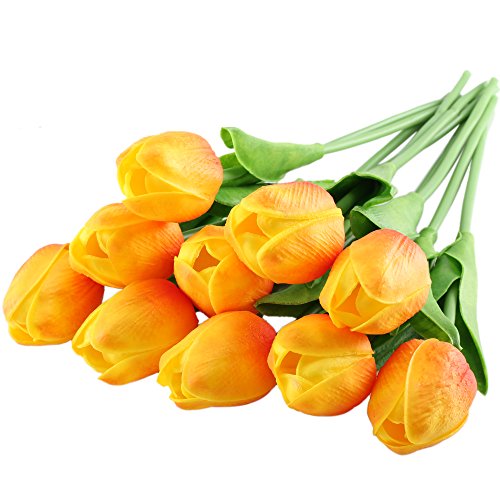 GTIDEA 10pcs Realistic PU Artificial Holland Tulip Flowers Life-like Faux Bouquet Arrangements for Home Kitchen Living Room Dining Table Wedding Centerpieces Decorations Orange