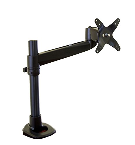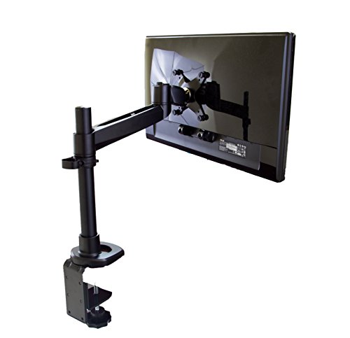 -. Feature : Mount-It! MI-32111 is full motion capable for 360 degree rotation on the pole as well as 360 rotation of the VESA head mount. The VESA bracket can also rotate your display from portrait to landscape and everything in between. The adjustable height pole allows for a maximum height of 10 inches. The maximum length of the arm is 11.8 inches when fully extended / This desk mount is capable of suspending any 30 inch screen or less above your desk. The desk must have a thickness of 1 to 2 inches in order for the Grommet clamp to securely fasten to the desk. The VESA bracket must also align with the VESA on the back of your TV. It is compatible with 75x75mm and 100x100mm configurations. The VESA compatibility with this arm makes it an enduring design and it is also capable of mounting other VESA attachable products for tablets, laptops, and more. / Having multiple orientations and angles to choose from provides an ergonomically sound environment for your eyes, neck, and back pains. The 105 degree tilt range of your screen can help fight sun glare and adjust for optimal viewing angles when standing, sitting, or laying down. This desk mount stand is aided by a spring action arm which makes movements smooth, fast, and easy / Besides the spring arm action there is a quick release mode which is engineered to make swiveling and rotating your device even easier. The spring action and quick release arm is capable of holding a 30lb television or display screen which means it supports most of the safety rated maximum screen sizes. The powder coated aluminum alloy is a sturdy and durable material well suited for this product / The functions and abilities of a mobile screen will vastly surpass that of your seated monitor. The ability to move and orient your display will not only make it more functional, but more comfortable as well. This desk mount will organize your cables with its internal cable management system, organize your desk by floating the monitor, and create an ergonomic environment. The modern engineering makes it easy to integrate this device with your fashionable home