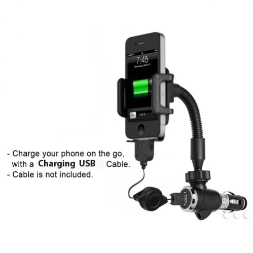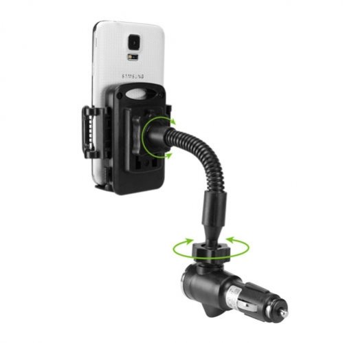 - Feature : SELNA(TM) 2 in 1 car charger and holder, Cigarette lighter adapter with Charging USB port. / Easy to install no tools required. Full 360 degree rotation in either direction. Adjustable to both Portrait and Landscape. / Charge device at same time through USB connection (5V DC). Able to connect adapter through lighter socket connection (12/24V DC). Phone can be used during charging. / Flexible long neck can be twisted and bended to position the holder at easy to reach positions. / USB CABLE SOLD SEPARATELY and NOT INCLUDED. Adjustable side arms expand to accommodate devices up to 4.2 inches wide.