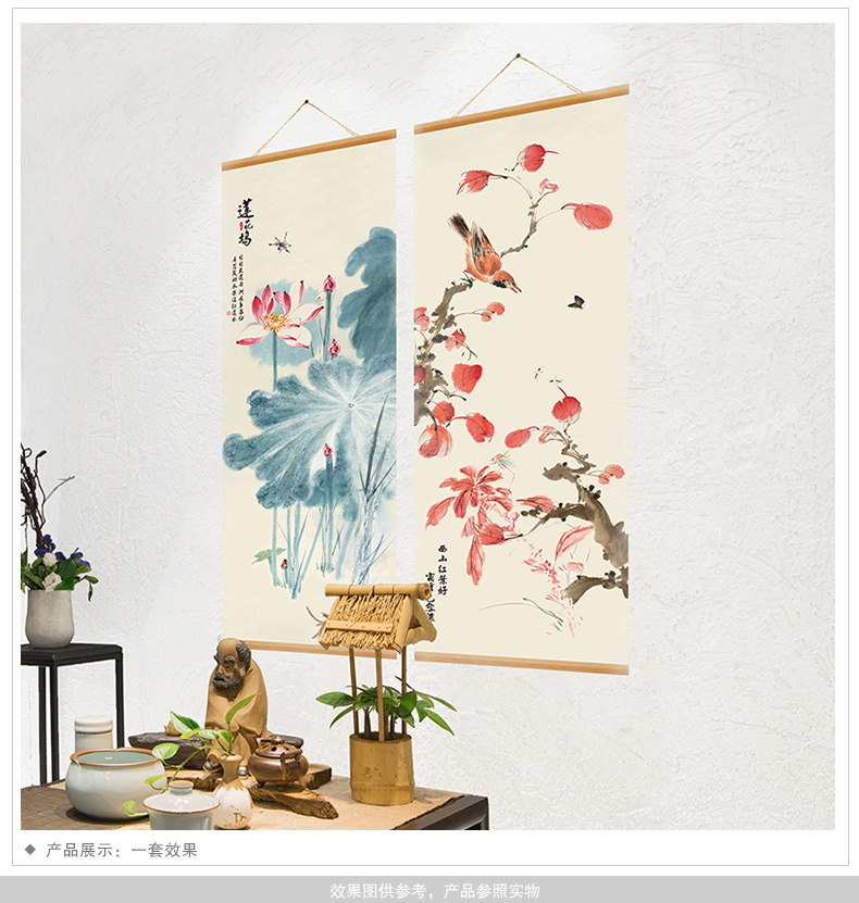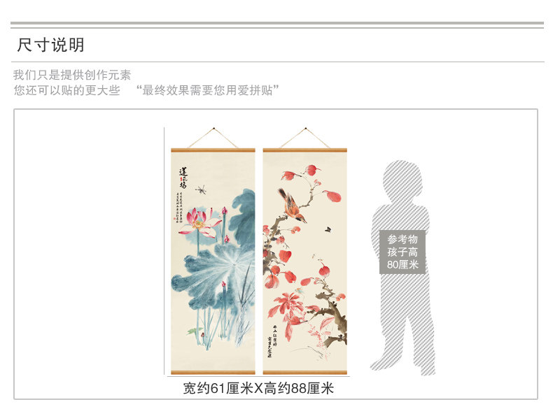 中国风水墨画卷创意中式墙贴纸贴画客厅书房公司办公室墙壁装饰画