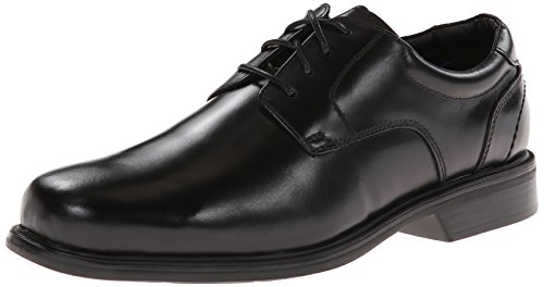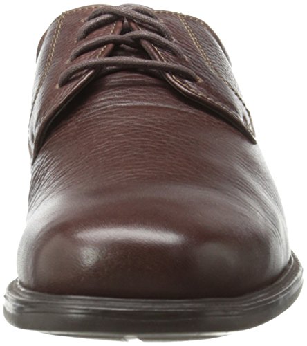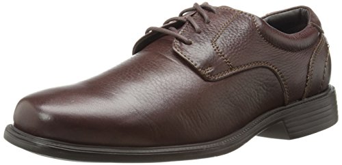 Comfort dress shoe featuring lace-up vamp, padded collar, and reinforced heel paneling