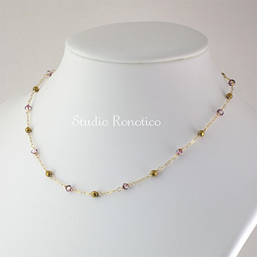 14kgf체인에 라일락 컬러의 스와로브스키 크리스탈을 떨어지면 #다