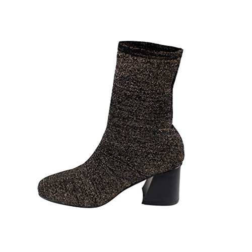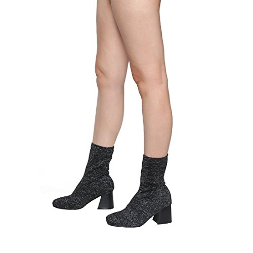 Binding : Apparel Product Description Finished with a stretchy sock knitting,easy pull on style,ankle high top silhouette,block stacked heel,shimmering material and padded footbed.Great comfortable shoes,perfect of casual wear,extremely durable and warm.It fit for Fall and Winter .Perfect to wear these boots to work, school, or just a casual weekend. Pretty shoes for going out and parties. Suitable for winter and fall,very comfy and beautiful, great for you everyday wear, keep the feet warm and comfortable all-day long. 0