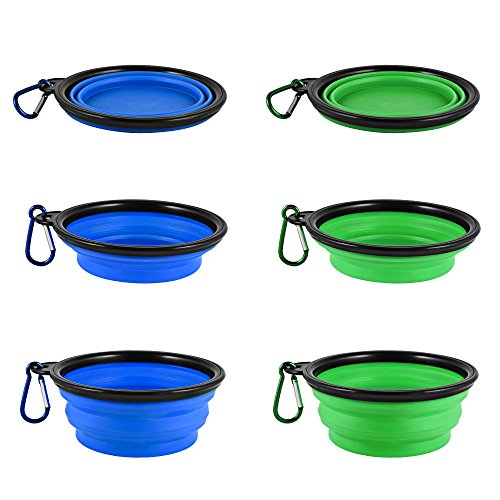 Studio : Sabuy Publisher : Sabuy Binding : Misc. Product Description SAFE Materials: 100% PET SAFE Food Grade Silicone Bowl with BPA Free Plastic Rim Size: Measures 5.1" (13cm) wide x 2.1" (5.5cm) tall when opened, measures 1 cm when it is folded. Suitable for Medium to Large Dogs and Cats to store water and food Features: Lightweight and easy to carry with metal carabiners,easy to pop up and fold away, which are good for traveling,hiking,camping and other activities indoor or outdoor Colors: Blue/Green Package includes two pcs of pet travel bowl, two metal carabiners and one phone stand if you have any problem about your purchasing, please contact us first, we will handle it for you as soon as possible, and we just make you happy and satisfied with it 0
