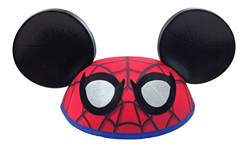 -. Binding : Toy -. Brand : Disney -. EAN : 0698887282819 -. Feature : Spider-Man design with embroidered details / Black durable Plastic Ears with web design / Double Brass Riveted ears and elastic chin strap / One size fits most children. / 5" H x 11" W (at ears) x 7" Circumference -. IsAdultProduct : 0 -. Label : Disney -. Manufacturer : Disney -. MPN : na -. PackageQuantity : 1 -. PartNumber : na -. ProductGroup : Toy -. ProductTypeName : TOYS_AND_GAMES -. Publisher : Disney -. Studio : Disney -. Title : Disney Park Marvel Spiderman Mickey Mouse Ears Hat -. UPC : 792491419804