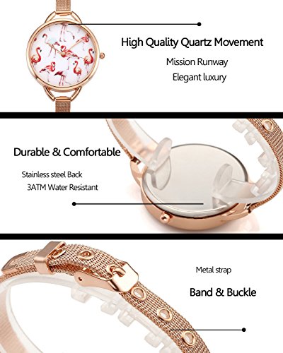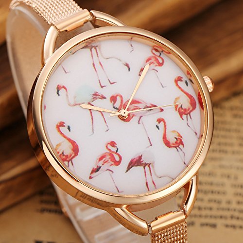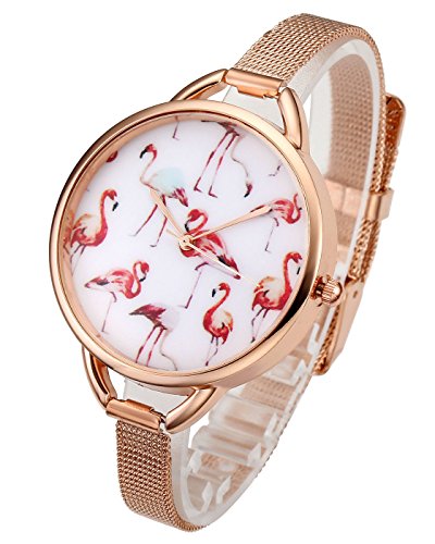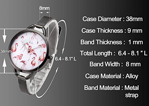 - Beautiful and Cute Pink Flamingos Pattern Design, Fashion lady bracelet watch with Thin Mesh Strap, Wear it make you look more confident, bring you a wonderful wear experience.