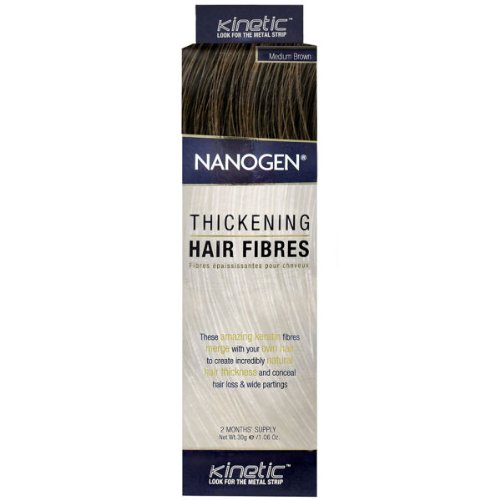 -. Binding : Misc. -. Brand : Nanogen -. EAN : 0881355108913 -. Feature : Nanofibres are applied quickly and without mess by simply shaking over thinning hair / Nanofibres bond to your hair so securely they will stay in place all day and will not stain or smear / Nanofibers will even resist strong winds rain and swimming when combined with Locking Mist Plus / They are completely natural and they will not damage your hair or scalp / Charged with static electricity they bond to your own hair -. IsAdultProduct : 0 -. Label : Nanogen -. Manufacturer : Nanogen -. MPN : B004L7EIZG -. PackageQuantity : 1 -. PartNumber : B004L7EIZG -. ProductGroup : Beauty -. ProductTypeName : BEAUTY -. Publisher : Nanogen -. Studio : Nanogen -. Title : Nanogen Hair Building Fiber, Medium Brown 30 Grams -. UPC : 884467657980