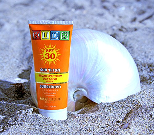 It is not just a baby sun screen, it's a state of the art skin care pampering treatment - with sunscreen. Water resistant up to 80 min. It's been designed with delicate and sensitive baby's skin in mind and addresses not only protection from the harmful UVA and UVB sun rays but also helps to care for dry skin while hydrating and soothing. PABA-Free, chemical-free mineral based (NON-NANO) hydrating and moisturizing Sunblock SPF30 provides high UV protection for your baby. Organic Marshmallow, Grapeseed and Raspberry rich with vitamin C and antioxidants fights skin damage and cellular oxidation (that are causes of aging. Yes, aging starts the day we are born), caused by excessive free radical activity. It also contains excellent anti-irritant and anti-inflammatory properties. Green tea, thought to be 200 times more powerful than vitamin E for neutralizing free radicals and has a protective role to play here as well. It prevents free radical damage. Kelp and Cucumber contain abundant non-essential and essential amino acids and are highly moisturizing, soothing and hydrating. Rosehip oil, rich in Omega-3,6 and 9 Fatty Acids, Vitamins C, E, and Lycopene promotes healing and nourishing, leaving skin glowing and healthy looking. Tamanu oil contributes to the formula with it's strong anti-inflammatory properties and helps with dry skin and eczema. Combination of Cocoa and a hint of Vanilla create that yummy chocolate scent, that's achieved naturally, as well as have moisturizing and healing properties. This product was created for our tiny friends but our grown-up friends can use it too. It's highly addictive.... Current batch expires at the end of 5/20.Feature