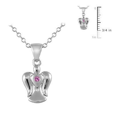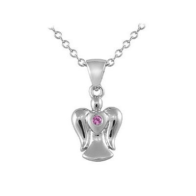 -. Title : 14-16 in Silver Pink Sapphire Angel Pendant Trace Chain Girl Necklace