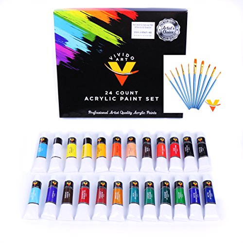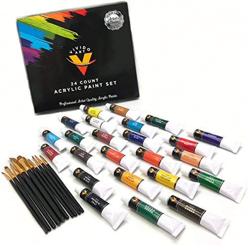 - ⭐️ THE HIGHEST QUALITY ACRYLIC PAINT + BEST SELLING ACRYLIC PAINT BRUSH SET. Professional Heavy Body Acrylic Paint Set. We tried every bestselling 24 Piece 12ml acrylic paint set when creating Vivido Art Acrylic Paint. They all said High Pigment Acrylic Paint. They were cheap, clumpy, watered down, dried fast and dull. This is a REAL Artist Quality Acrylic Paint set. Artist loft acrylic paint sets, artists rock painting supplies acrylic paint brushes with paint set Acryllic paint set brushes
