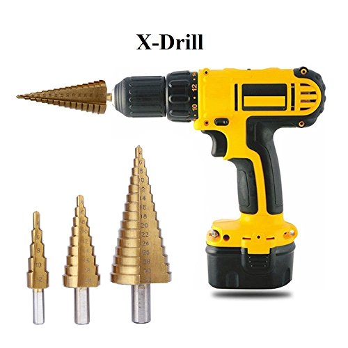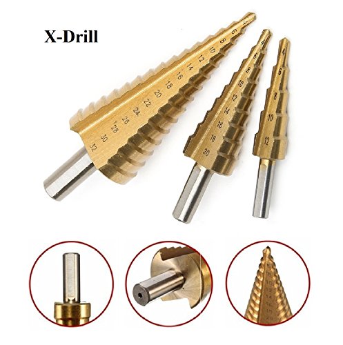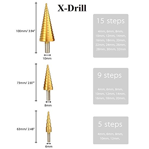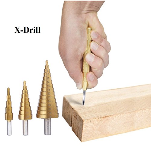X-Drill Step Drill Bit Set - 3 PCS HSS Titanium Metric 4-12/20/32mm with Automatic Center Punch