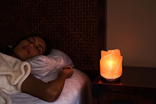 Natural Himalayan Salt Lamp on Solid Neem Wood Base | Romantic Flower Shape | Dual Voltage (AC 230V/110V), UL Listed, 6' Cord & Dimmer Switch by Uniwaresal, 7 lbs