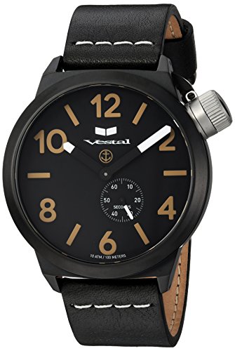 Vestal Quartz Stainless Steel and Leather Dress Watch, Color:Black (Model: CNT453L07.BKWH)