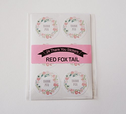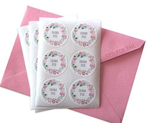 36 Pink Flower Thank You Stickers 1.5 inches - Red Fox Tail