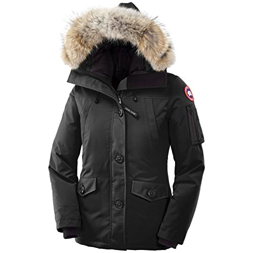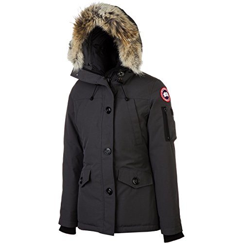 FEATURES of the Canada Goose Women's Montebello Parka Rated a 3 on Canada Goose's Thermal Experience Index, this jacket should keep you warm around 10?F Low-hip length provides good protection against bitter gusts of wind and freezing park benches One-way adjustable down hood (hood opening) surrounded by a Removable Coyote fur ruff for those good hair days Fleece-lined chin guard is soft and comfy, helping you avoid awful chin chafing Heavy-duty, centre front YKK 2-way locking zipper secured with Military button closure keeps moisture out Two upper fleece-lined handwarmer pockets are secured with snap closure. I use them to store my mints. Two lower fleece-lined pockets with flaps secured by Military button closures for keeping your paws warm or holding your phone Features a utility pocket on left sleeve as well as two interior pockets. Just imagine all the neat things you can put in these. Right inside security pocket with zipper closure has an additional stretch media pocket with headphone access opening so you can take your fav band with you on your morning trek Interior shoulder straps allow you to carry the parka like a backpack when out of the elements. So easy. The recessed heavy-duty rib-knit cuffs keep out the cold gusts of wind, helping to lock in the toasty warmth Internal elastic drawcord to adjust the waist without having to fight with external toggles SPECIFICATIONS of the Canada Goose Women's Montebello Parka Centre Back Length: 28" / 71.12 cm Fill Power: 625 Fill Power White Duck Down Fit: Slim Insulated Coyote Fur Ruff: Removable This product can only be shipped within the United States. Please don't hate us.Feature