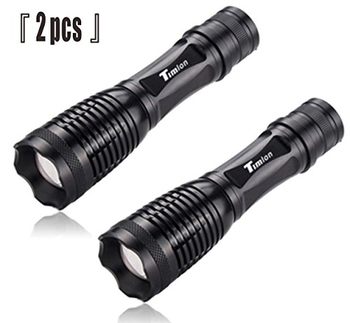 Timlon 2 Pack 2000LM Tactical Flashlight Cree XM-L T6 5 Switch Modes Zoomable and Water Resist LED Flashlight(black)