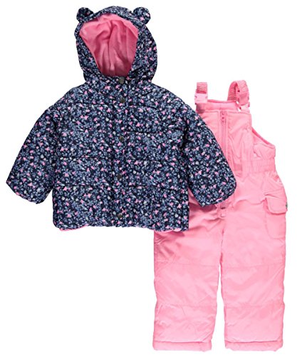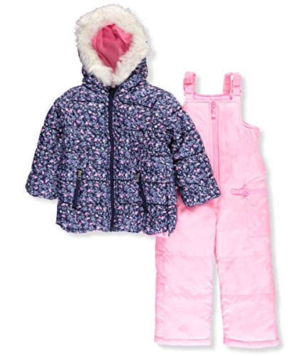 Snowsuit with snow bib and printed jacket with fur lined hood