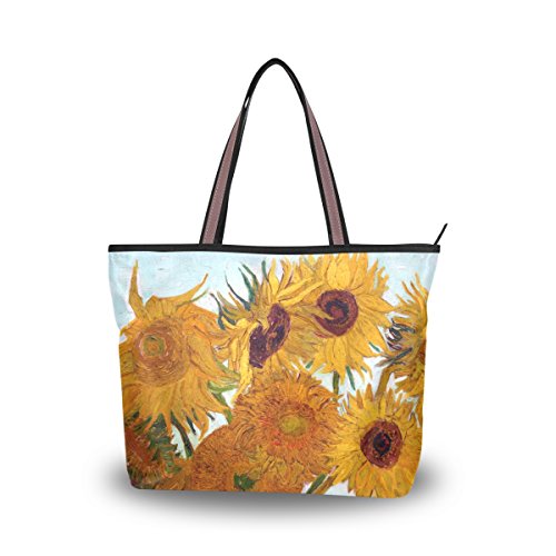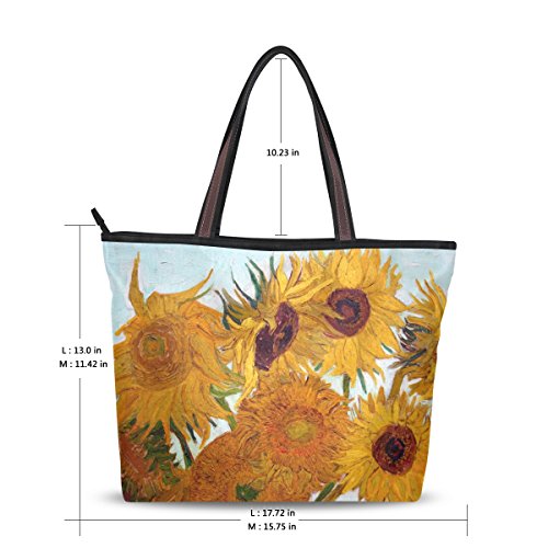 JSTEL Women Large Tote Top Handle Shoulder Bags Van Gogh Sunflower Patern Ladies Handbag
