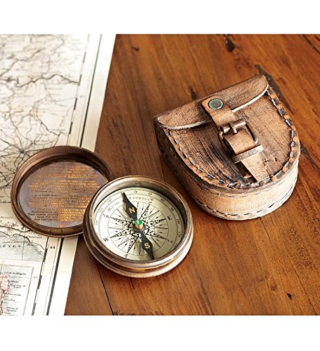 Studio : Wind Weather® Publisher : Wind Weather® Binding : Kitchen Product Description The perfect gift for travelers (armchair or otherwise), our Antiqued Brass Poem Compass With Leather Case includes a cover with Robert Frost's famous poem "The Road Not Taken." This is a gift that will be cherished for generations. Brass and glass compass, leather case. Size: 2-1/2" dia. x 1"H. 0