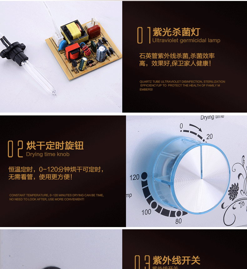 这款带烘干+高温+真正紫外线+臭氧+静音