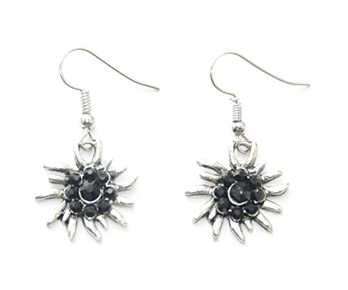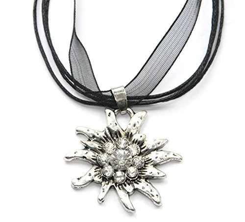 Angel for Angel Trachtenkette und Ohrhanger mit Schwarz und Klar Edelweiss silber-farben Trachtenschmuck und Trachten-Ohrringe und Trachtenkette und Trachtenhalskette furs Dirndl zur Wiesn und Okt