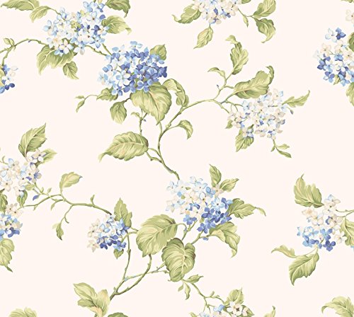 -. Title : York Wallcoverings CT0907 Callaway Cottage Hydrangea Sidewall Wallpaper; White/Llight to Dark Blues/Beige/Yellow/Green