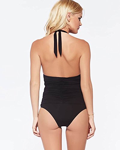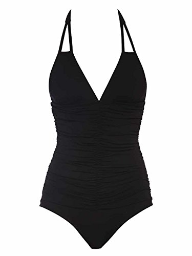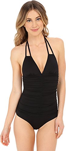 Product DescriptionNora one piece halter with ruching and removable pads, ties at neck.0