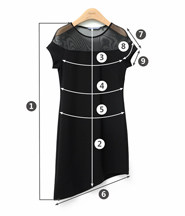 | 尺码 | ①前衣长 | ②后中长 | ③胸围 | ④腰围 | ⑤臀围 | ⑥下摆围 | ⑦袖长 | ⑧袖臂围 | ⑨袖口围 | ||