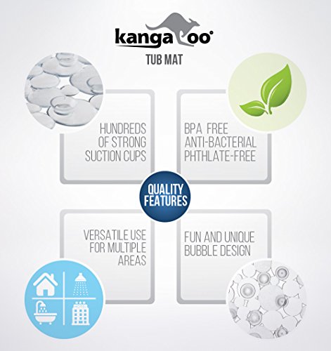 - PERFECT FOR YOUR FAMILY: Help keep your family safe with the Kangaroo bath and shower mat. With hundreds of suction cups that work on smooth surfaces, you can feel good about putting a quality product in your home. Plus, our mat features small holes throughout the mat allowing water to safely circulate (that means water should not pool on the surface) and reduce mildew growth. Please note, this mat is NOT INTENDED FOR TEXTURED OR TILED SURFACES.
