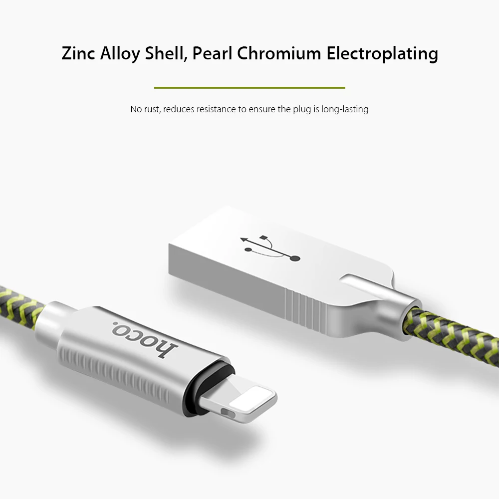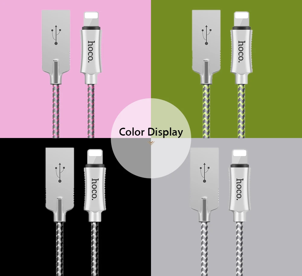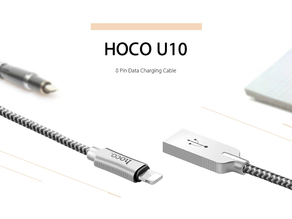 HOCO U10 8 Pin Zinc Alloy Reflective Braided Data Cable 1.2M for iPhone/ iPad and other 8 Pin Devices