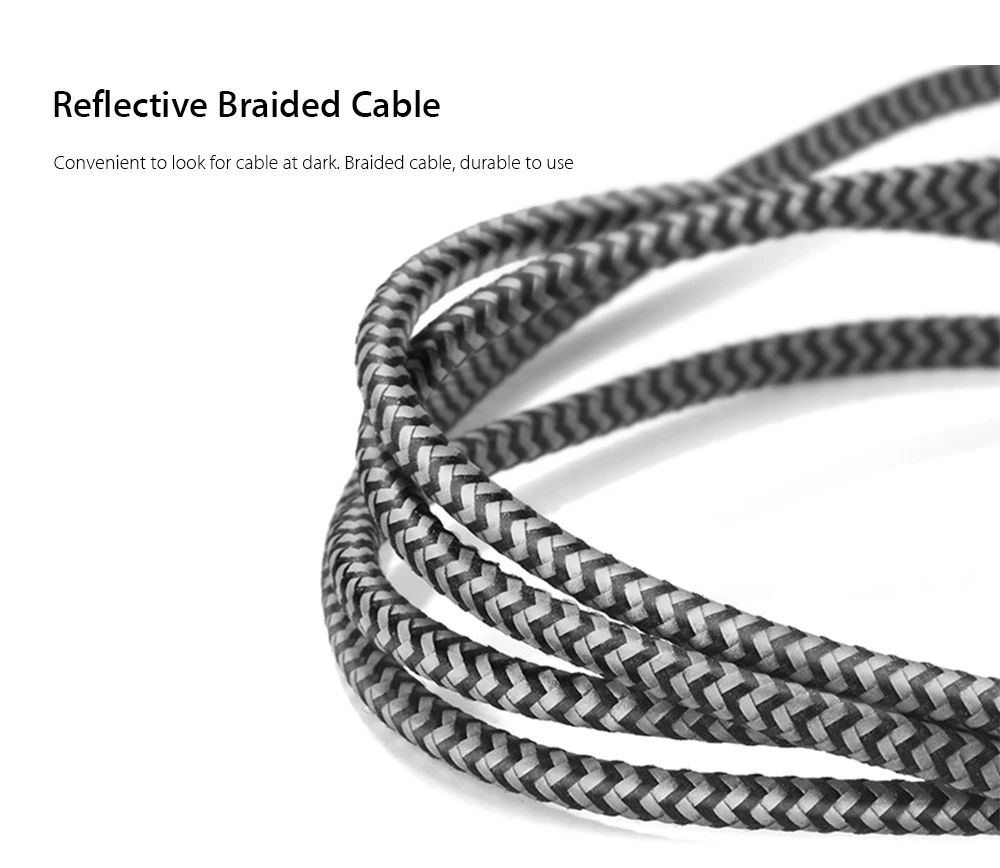 Reflective material, convenient to look for cable at dark. Braided cable, refuse to knot, durable to use
