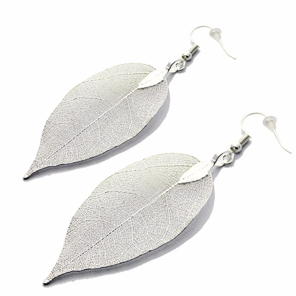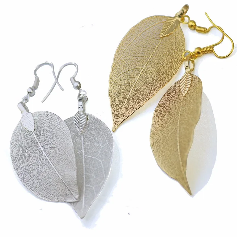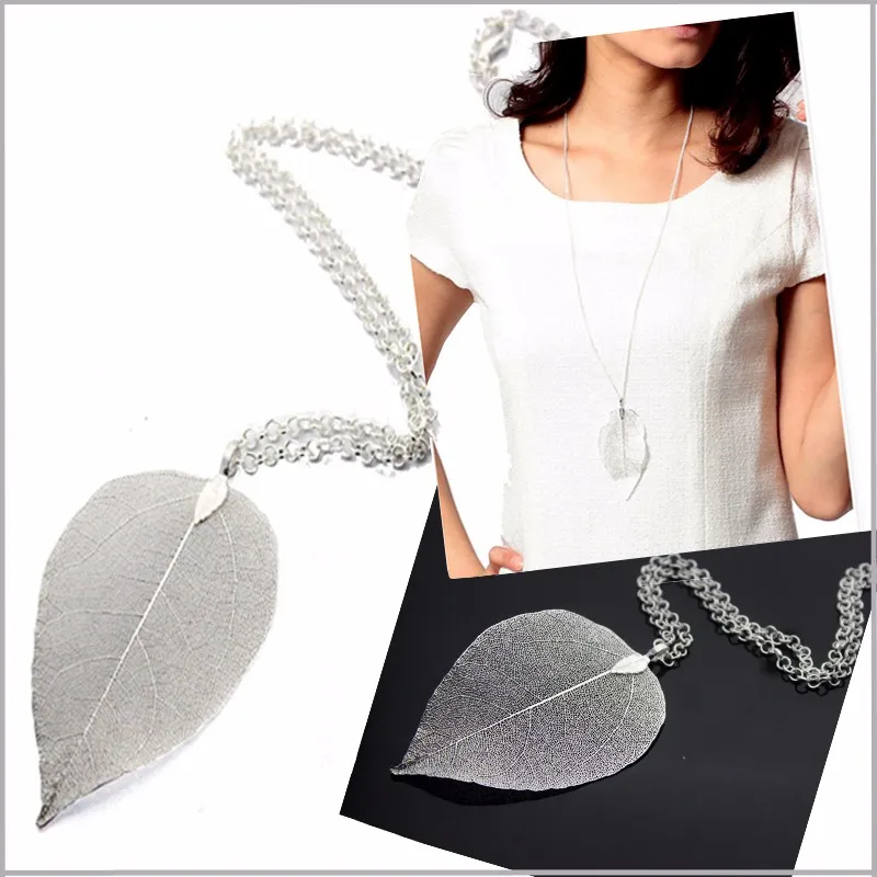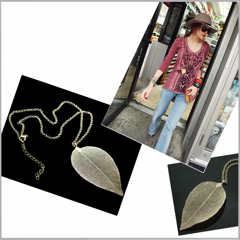 Real Leaf Necklace Gold-color Natural Leaf Pendant Necklace for Women Vintage Long Chain Maxi Necklace Jewelry Boho Chic bijoux