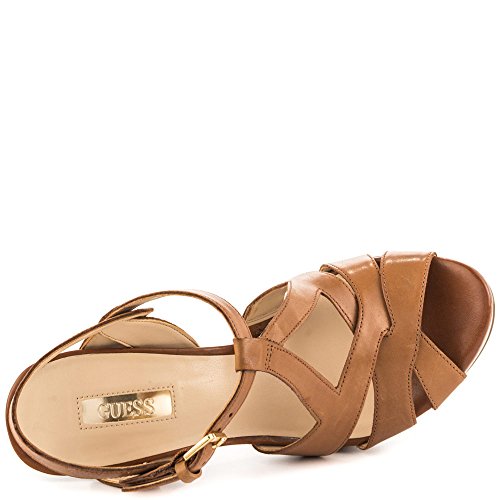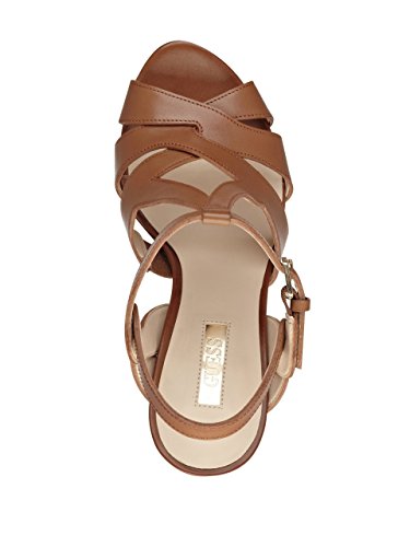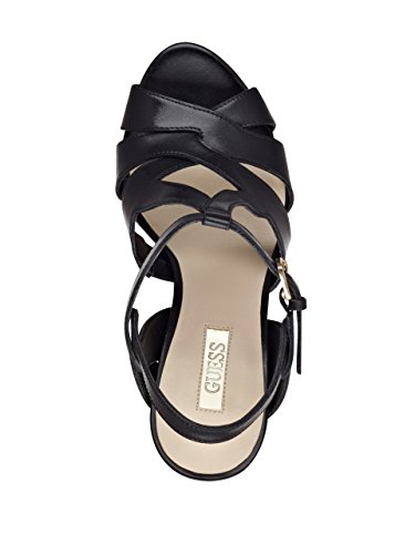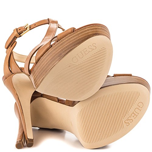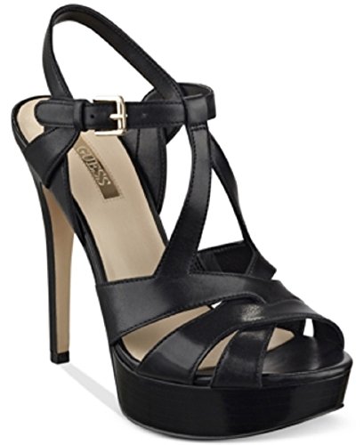 Studio : GUESS Publisher : GUESS Binding : Apparel Product Description A strappy leather design and sexy platform make these heels your new day-to-night favorite. Choose from black or cognac for a versatile look, or opt for the metallic python print for statement-making appeal. 0