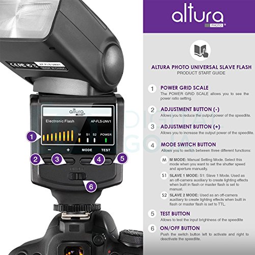 Altura Photo® Professional Speedlite Flash for Canon, Nikon, Pentax and Olympus Cameras including Coolpix, Powershot, Four Thirds, Micro Four Thirds and any other camera with a standard hot shoe mount.