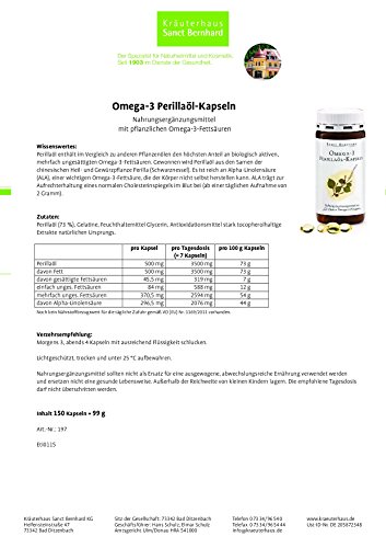 -. Feature : Perillaöl enthält vergleichsweise hohen Anteil an biologisch aktiven Omega-3-Fettsäuren / Reich an Alpha- Linolensäure (ALA), die der Körper nicht selbst herstellen kann