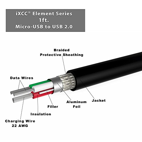 iXCC 1 foot 22awg MicroUSB cable charges your device at fast charging speed, also supports quick data sync at 480 Mpbs.