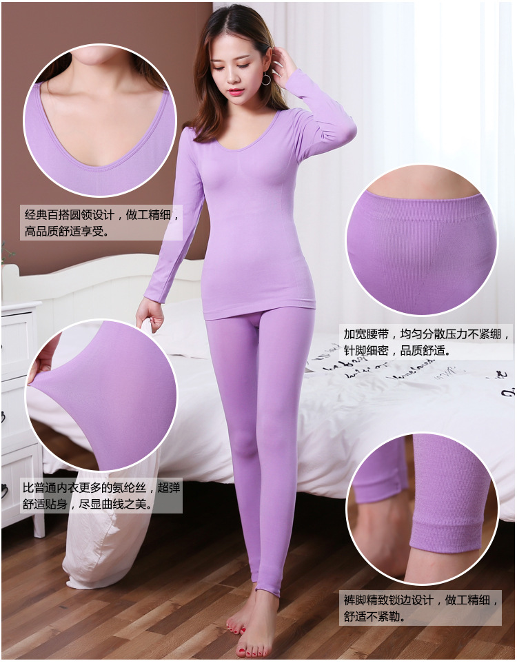 掌柜推荐:2017秋季新款塑身保暖内衣套装,纯色莫代尔棉基础打底棉毛衫,天然环保活性染色制衣,面料采用的都是细棉,柔软贴身,并不是市场上便宜的涤纶货。有多种颜色可选,手感超柔,不起球,弹性很好,上身效果特别贴身舒适,具有不错的保暖效果,是秋冬打底必备内衣,睡衣,上衣也可外穿,告别臃肿,穿起来更加性感妖娆!品牌实体店的品质,袖口裤脚防开裂锁边,品质细节看得见;单套精美袋装,送礼或者自己穿都非常合适,所以受到广大顾客的喜爱。物美价优,无论是实体店、网店、商场促销专柜都卖爆了!
