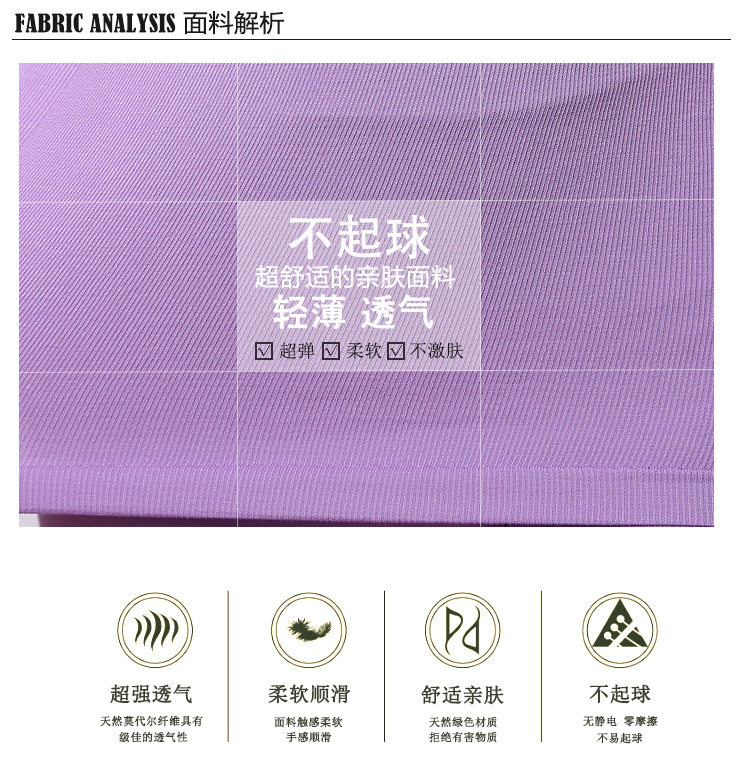 面料成分:40%莫代尔+40%棉+15%锦纶+5%氨纶。