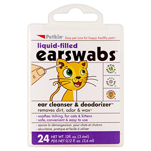 -. Title : Petkin Liquid-Filled EarSwabs Ear Cleanser & Deodorizer for Cats, 0.12 fl oz, 24 count