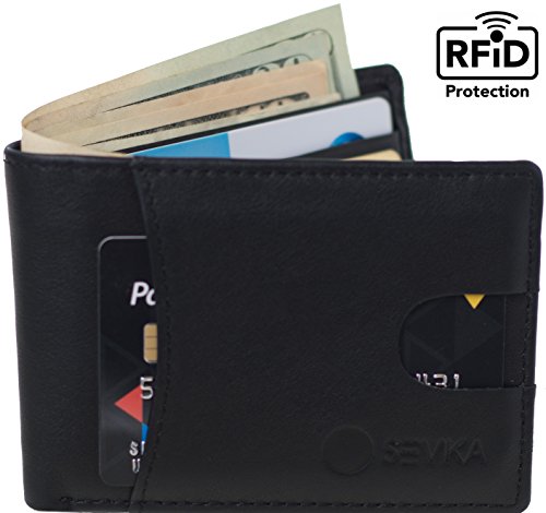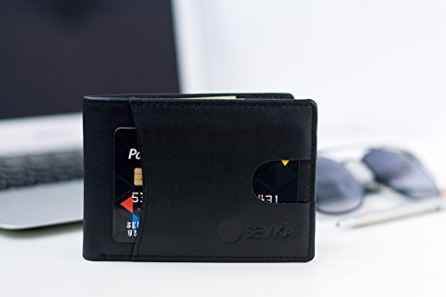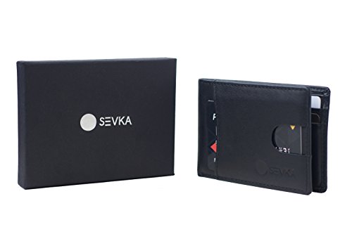 100% Genuine Leather. Ultra slim, stylish and compact design provides comfortable front and back pocket wear. It has been upgraded with RFID blocking technology to give you the best in both style and safety. Size: 4,3" x 3" (110mm x 76mm). Weight: 1,5 ounce(42gram). Structure: 4 x card slots (holds up to 8 cards), 1 x ID window, 1 x full-size money pocket. DON'T BECOME A VICTIM! Thieves can use an RFID card scanner to steal information without ever touching your cards. RFID Wallet blocks criminals from scanning chips embedded in modern credit cards. Keeps your personal information 100% safe. PERFECT GIFT - an exceptional wallet for men of all ages. This men's wallet is a GREAT BIRTHDAY GIFT idea and comes beautifully packaged in a gift box. No unnecessary metallic details and red straps(used to push cards out) that usually break.Only leather and nothing else! No need to wait!Add it to your cart now and enjoy! 0 |