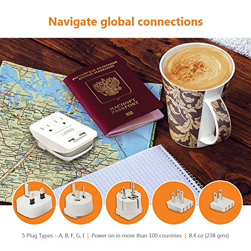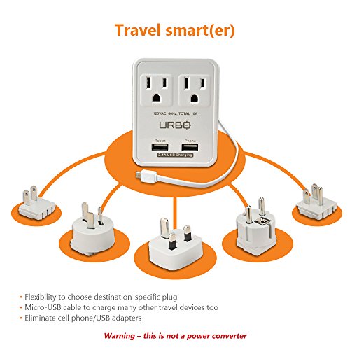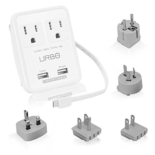 Urbo World Traveler's Multi-Port Wall Charger with International Adapter Plugs & Integrated Micro-USB Cable, for Power Sockets in more than 100 Countries across Europe, Asia, Americas, Africa, Oceania