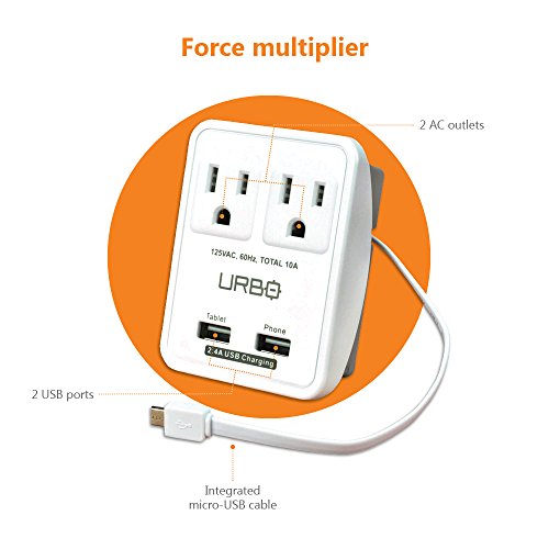 - 2 AC outlets+ 2 USB Ports+ Integrated Micro-USB cable to charge laptops, smartphones and USB devices.
