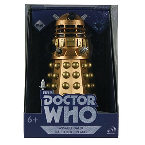 Warning: This wireless Bluetooth speaker looks and sounds like a Dalek! Meticulous craftsmanship and incredible sound quality. Sound clips include Exterminate, Gun, Reinitializing, Power Down, Good Dalek, and Override!