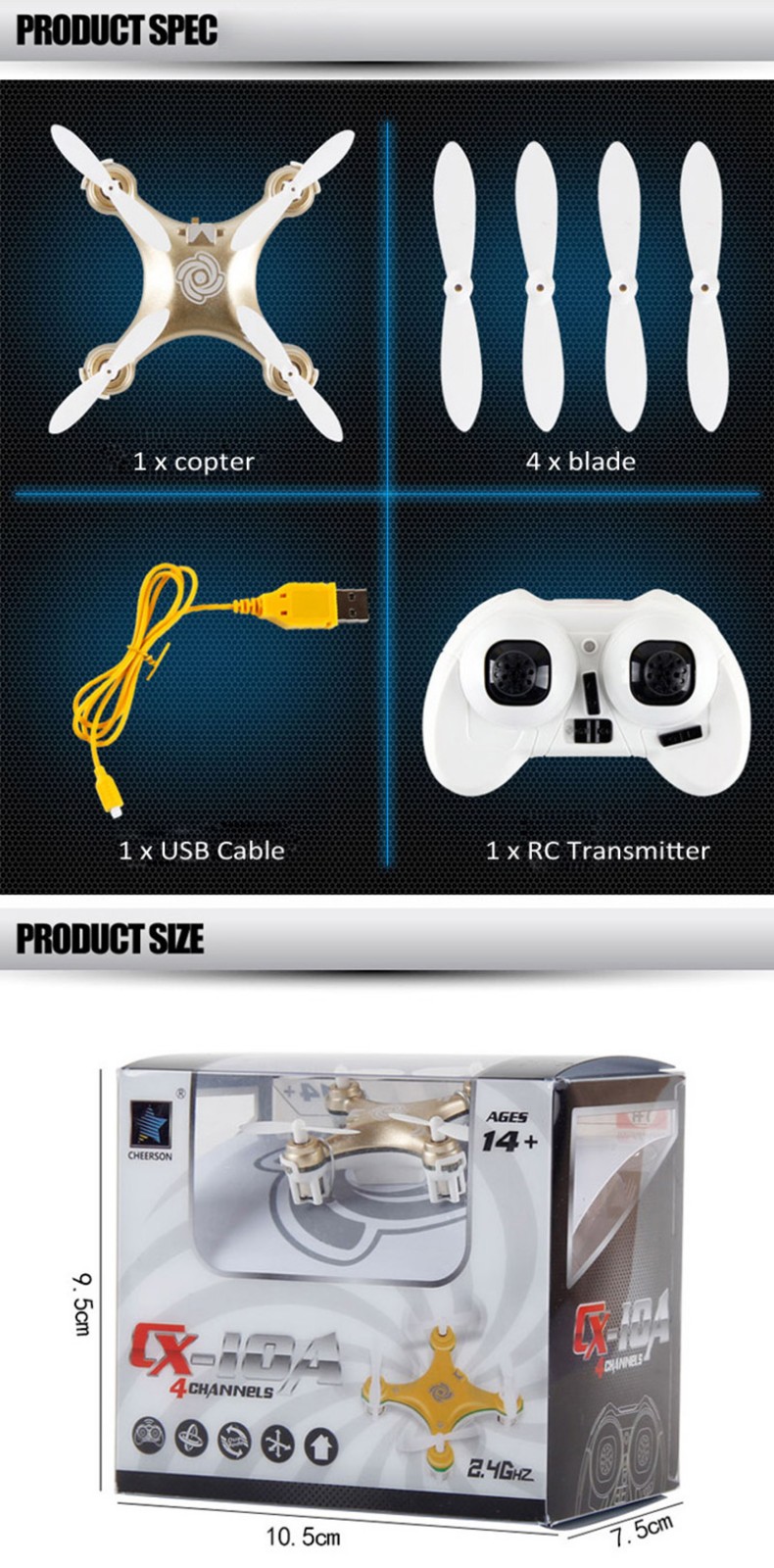 4 Channel which can do ascend, descend, forward, backward, left sideward fly, right sideward fly and throw to fly