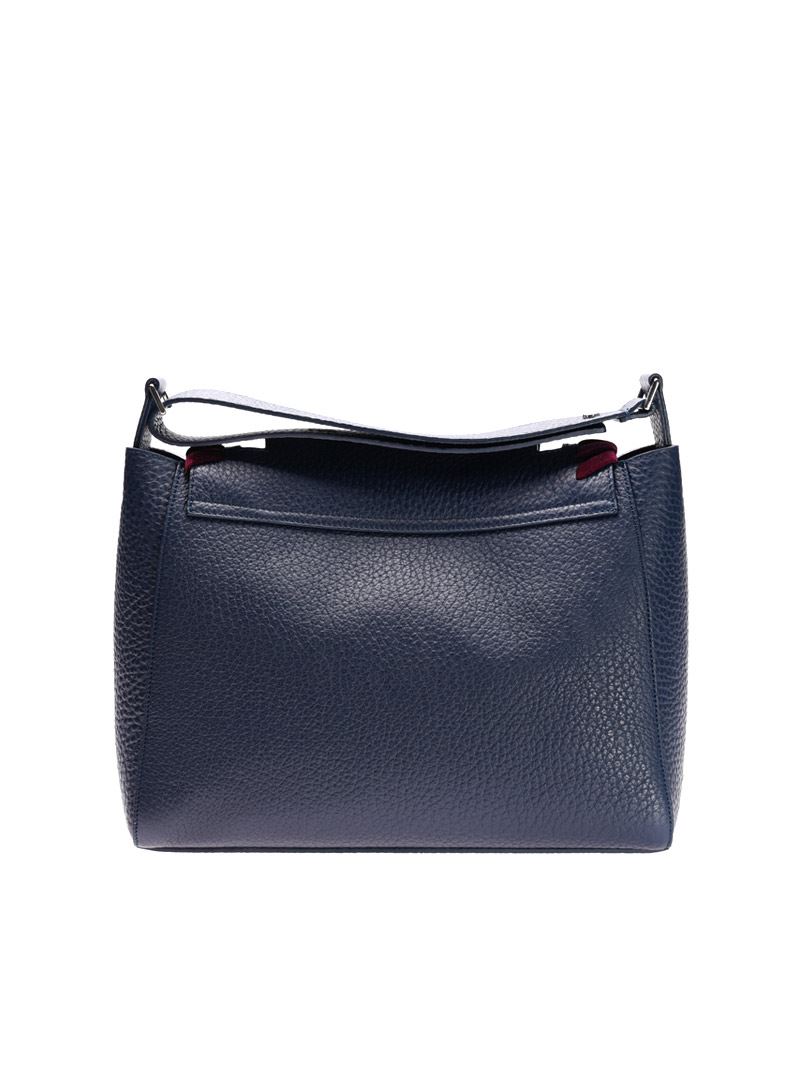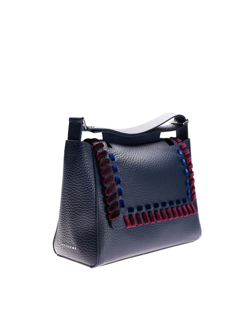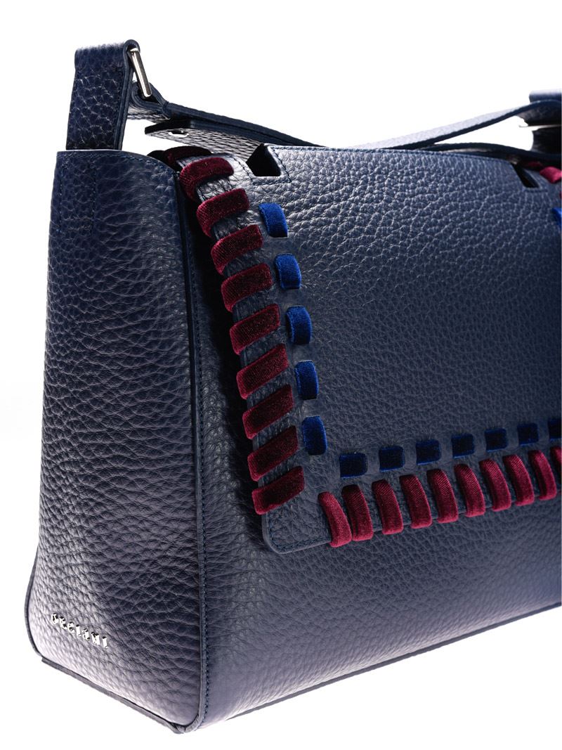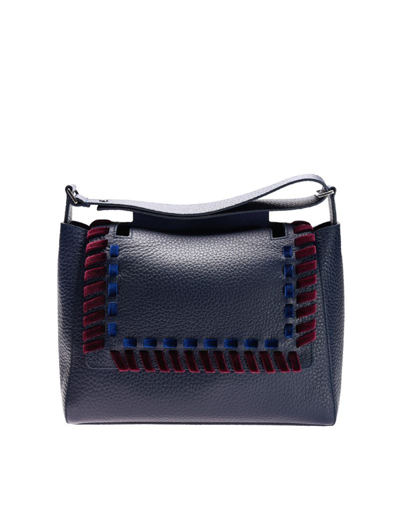 Hammered leather bagColor: blueBlue and red velvet inserts on the front flapSide logo detail